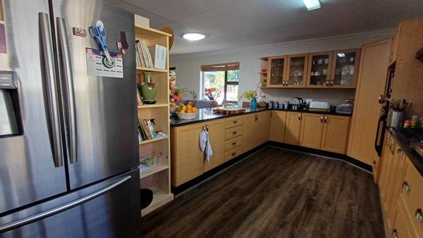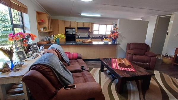 Enjoy a large entertainment braai room, seven water tanks, and a garden shed included in the sale. The property is fully equipped with an 8kW inverter, two batteries, and eight solar panels, ensuring energy efficiency.