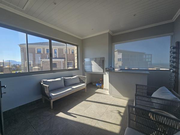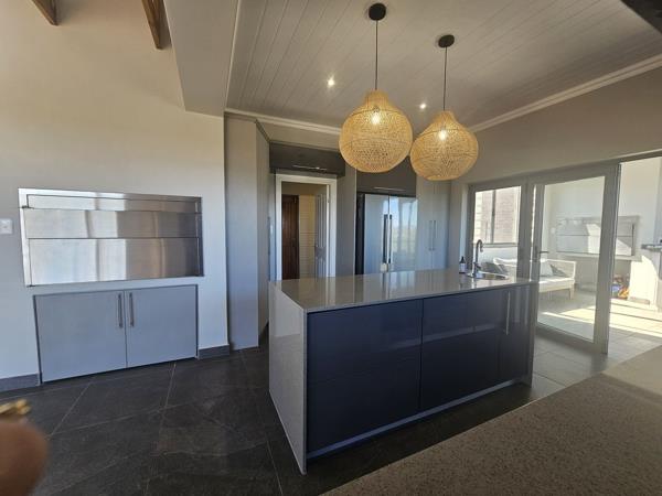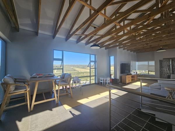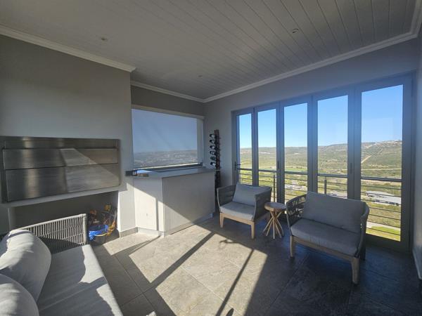 Featuring open spaces and large windows throughout, the property invites abundant natural light and offers stunning views. Enjoy a built-in braai that overlooks majestic mountains and provides distant sea views. The home is adorned with contemporary finishes, ensuring a stylish and comfortable living environment.