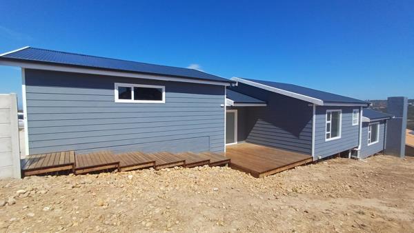This modern, open-plan Nutec home boasts breathtaking views of Diaz and Alwyndal, ideal for those seeking both style and scenery. The expansive living area seamlessly opens onto a covered deck, perfect for outdoor dining and entertaining with its dedicated braai area. The kitchen is thoughtfully designed for both function and style, offering generous counter space and ample cabinetry, while the adjoining scullery and laundry room provide added convenience.The spacious garage, complete with additional storage areas and built-in cupboard, caters perfectly to any buyer''s needs.