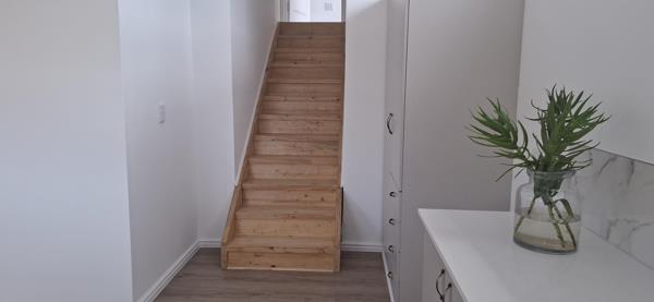 A private entrance for the bachelor unit providing independence and convenience. Upstairs showcases an open-plan living area seamlessly combining a spacious lounge, dining room, and a modern kitchen with gas stove and electric oven. Enjoy partial ocean and mountain views with stacker doors that open onto a wooden deck perfect for entertaining guests.