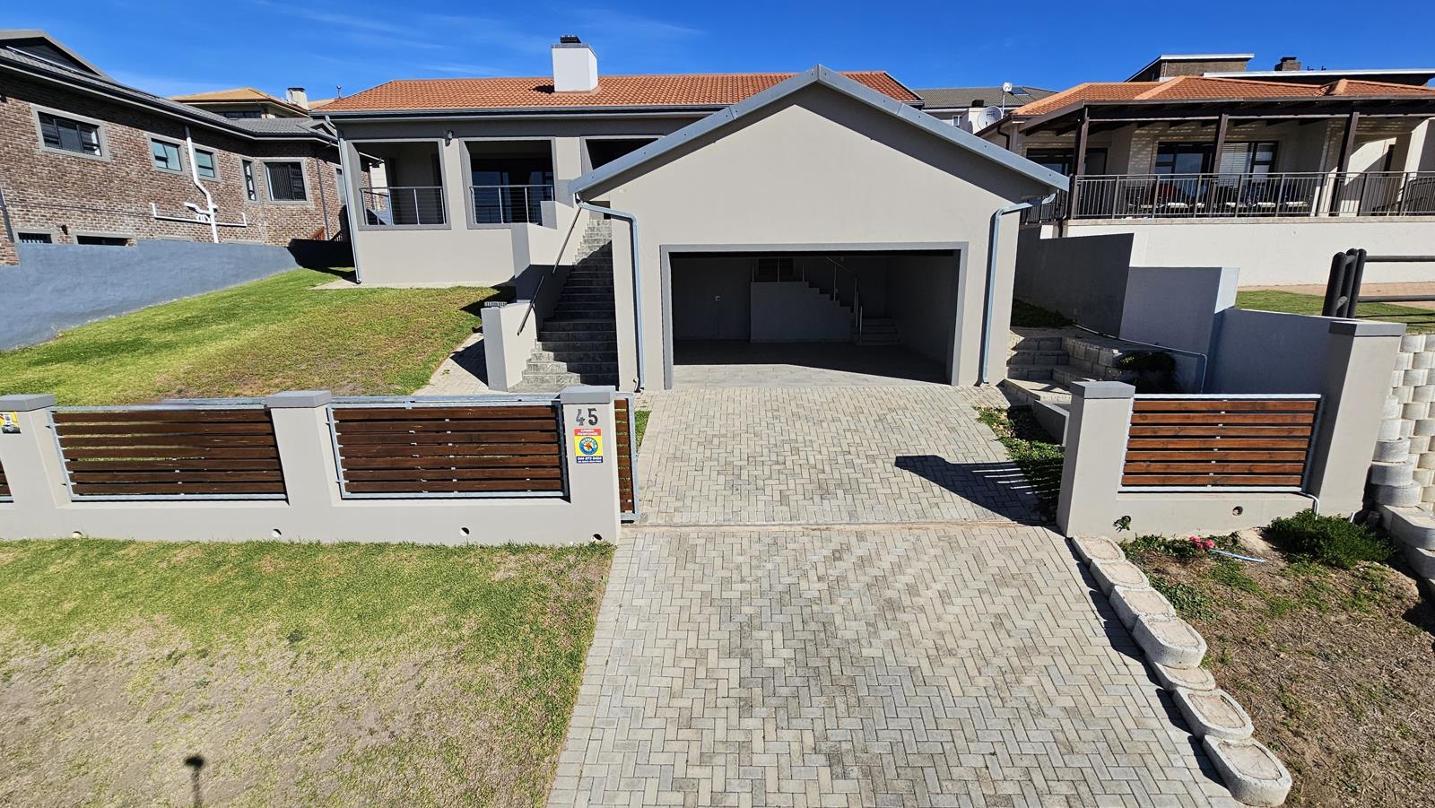 Fully fenced, automated gate and wide comfortable stairs to the front door.