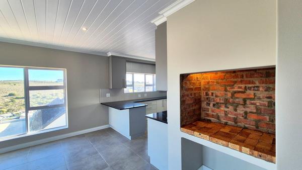This recently completed masterpiece is situated in the sought-after area of Seemeeu Park. Enjoy majestic green views from this prime location, perfect for those seeking tranquility and natural beauty. This modern home features 3 bedrooms and 2 bathrooms, ideal for a growing family or those looking for extra space. The large open plan living and dining area provides ample room for entertaining with its built in braai and has access through stacking doors to a spacious patio/deck where you can enjoy the serene surroundings.