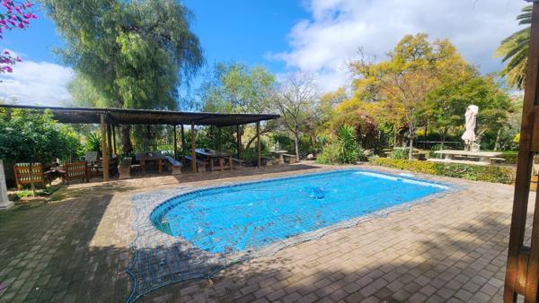 Outeniqua Gables is a charming Cape Dutch home in central Oudtshoorn, blending historic character with modern comforts. Located in a desirable neighborhood, the mansion offers lovely views of the Swartberg Mountains.