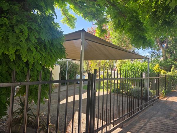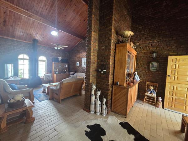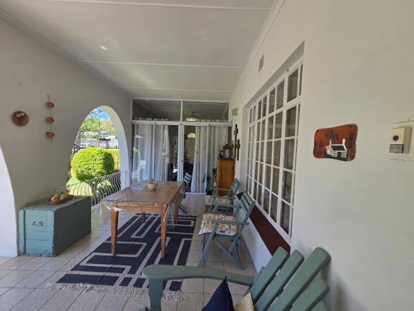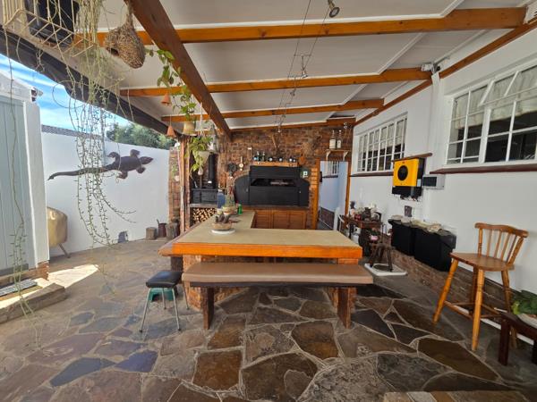 The kitchen is beautiful, modern, and large, equipped with a gas/electric stove and many built-in cupboards. The kitchen leads out to a lovely undercover braai (barbecue) area with canvas sides that can be lowered in winter, along with an outside bathroom and laundry room.