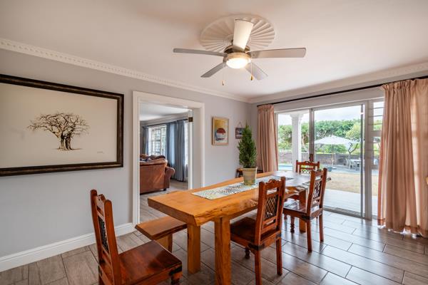A dining room that opens seamlessly onto the patio and garden, creating a wonderful indoor-outdoor flow.