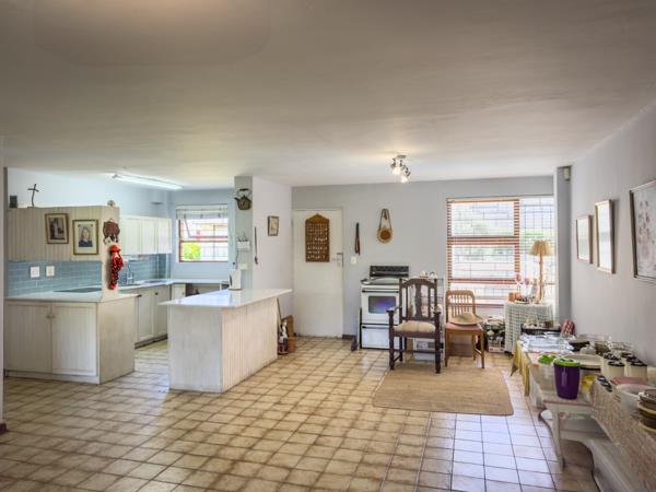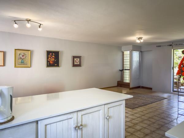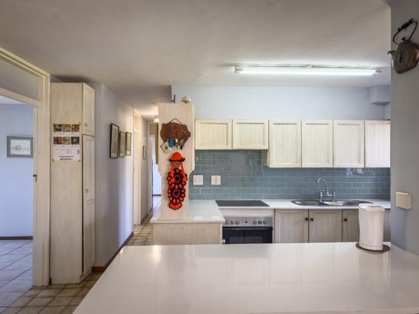 Compact but attractive kitchenoverlookinglarge dining room and lounge.