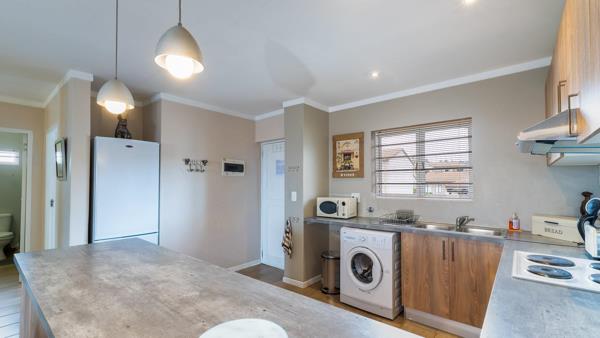 Immaculate, renovated, with good rental returns and an added bonus of a lovely north-facing aspect with beautiful mountain views. The main en-suite bedroom has access either onto the Juliette-style balcony, or the main balcony off the lounge. Both are ideal for morning coffees or evening sundowners. Being a top floor unit, one could readily sleep the summer nights away with both balcony doors open, enjoying the cool ocean breeze. The complex has established, well maintained gardens and a communal pool. Access to the unit is via 2 flights of stairs - well worth it for the view!