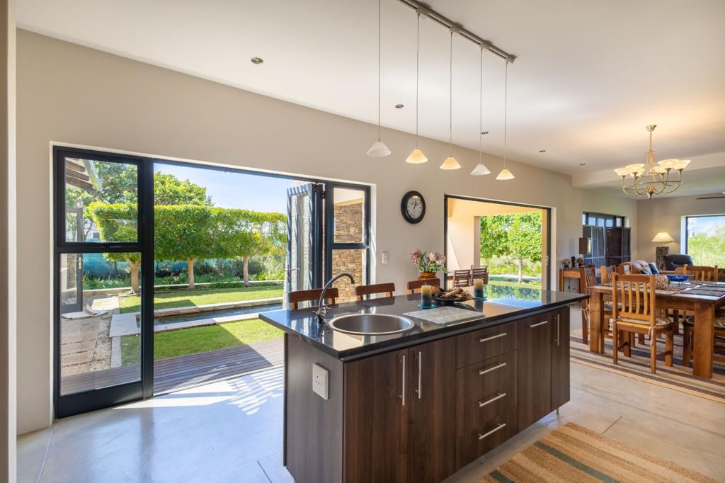 This stunning north-facing home situated in Brackenridge Estate, one of Plettenberg Bays top gates estates, is set over two levels. The home comprises of three generously sized bedrooms, three and a half modern bathrooms. A true sense of tranquility has been crafted throughout the home with high quality finishes, a bright and airy atmosphere and beautiful views over a bordering greenbelt of indigenous fynbos. This rare find offers the perfect blend of quality finishes, natural light and secure estate living.