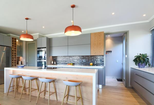 Back inside, the dining area links seamlessly with the state-of-the-art kitchen, styled with Caesarstone countertops and a central island. It boasts a Siemens multi-function oven, induction hob, and convection microwave, wine racks, soft-close drawers, and a walk-in pantry, while a discreet scullery and laundry tucked behind keep the space uncluttered.
