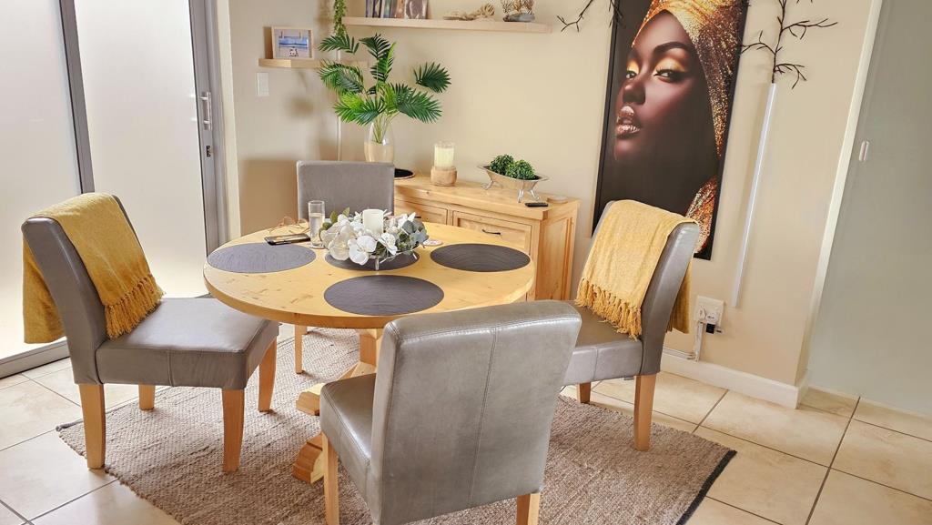 The living area has a dining area, lounge, kitchen that has space for 3 appliances.
