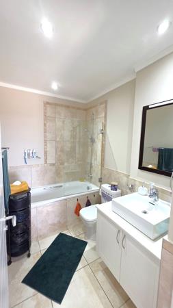 The en-suite bathroom includes a shower over bath while the other bathroom has a shower. Both bathrooms have vanities and generous basins.