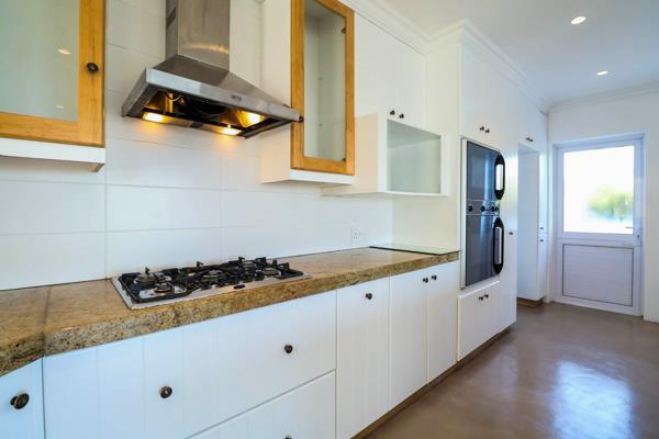 The kitchen, with granite counter tops has a large serving area for ease of catering and entertaining. A separate scullery which opens onto an enclosed space with a staff suite.