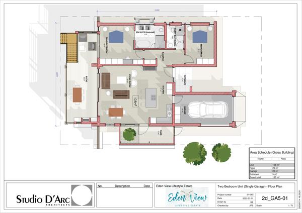 Now selling Phase 1- This 2 bedroom freestanding home with single garage. Depending on the topography some homes require a basement as part of the design and others are an optional extra. Sustainable solutions include a centralised solar system for the estate, 5000L rainwater tanks in all homes, and indigenous water-wise landscaping. All homes are wheelchair friendly.