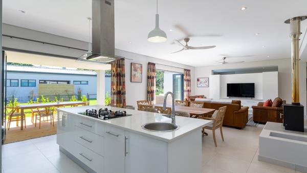 The home itself is north-facing with 3 en-suite bedrooms and a stylish, modern, open plan layout that urges you to open every door and window and invite nature within. Finishes are bespoke and high-end, with custom cabinetry and timber ceiling fans two of the highlights. Tandem banks of stackaway doors opening onto the partially covered patio and braai area further extend the living space to embrace the inherent greenery and goodness of the estate. A tennis court, swimming pool and clubhouse are additional facilities available to homeowners. Outstanding bird life (fish eagles and turacaos, to name but two) is another priceless attraction.