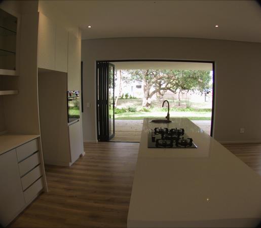 This modern home features 3 spacious ensuite bedrooms with a luxurious free-standing bath in the main bathroom. A light, neutral colour palette throughout the home gives a sense of space, and large windows allow sunlight to stream into every room. Bathroom fittings throughout the home add a touch of class and glamour.