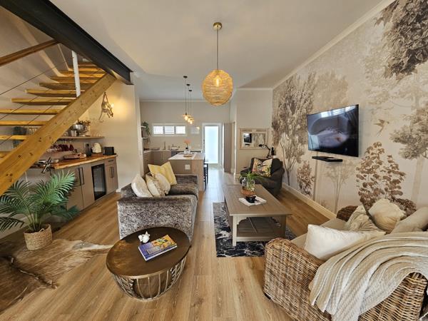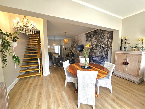 Newly renovated and refurbished this is a stunning duplex apartment situated in The Dunes Resort in Keurbooms. Measuring 156m2 the apartment comprises of 2 ensuite bedrooms on the upper level and a spacious open plan living areas on the ground floor which leads out to the enclosed garden and braai area. The main bedroom has a lovely wood burning fireplace and the owner has extended the bedroom size and added large sliding doors to bring the outside in. With attention to detail and beautifully furnished this is a well thought-out apartment. For convenience there is an inverter and also a clever bar addition tucked under the stairs.