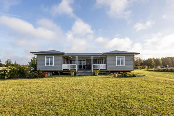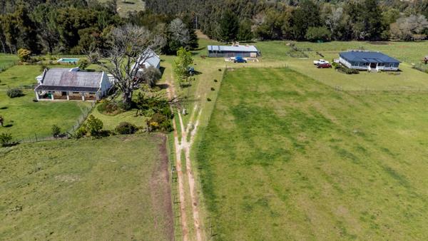 Winding farm roads guide you through the idyllic countryside of Fisanthoek, where lush forests give way to hilltop prairies fertile, green, and endlessly serene. Finally, you arrive at Ravens Rest, where a two-spoor track carries you between wide-open pastures with tall grass billowing softly in the breeze. Its easy to imagine your preferred animals there cows, sheep, horses, or perhaps even alpacas that glance up at you before returning to their grazing. Tall oaks and forest groves frame the outer edges of the property, lending the landscape a charming English-countryside feel. At its heart stands a traditional Cape farmhouse, pretty as a postcard, nestled among flowering gardens and fenced paddocks.