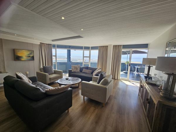 This is a fantastic opportunity to buy a spacious centrally situated apartment in Plettenberg Bay with fabulous sea and mountain views. Positioned on the top floor the apartment is light and bright with a northerly aspect and roomy open plan living areas which open out to a large patio with elevated mountain, lagoon and ocean views. The apartment comprises of 3 bedrooms, 2 bathrooms, study, lounge/dining area, a well-equipped kitchen and additional guest toilet. The main bedroom is ensuite with a large dressing room with plenty of built-in cupboards and a vanity area. A large sliding glass door leads out to the main patio letting in warmth and light. The second bedroom also accesses the main patio and both bathrooms have been stylishly renovated. The kitchen is cleverly designed with ample cupboards and work surfaces and the sink and appliances are tucked out of view from the living area. The owner has installed an inverter and solar panels for peace of mind and the complex has an undercover open plan garage with a designated parking bay and extra visitor parking for guests. Access to the apartment is via a secure stairwell and there is a personal storeroom for the unit at the entrance. Positioned in the CBD of Plettenberg Bay, the apartment is walking distance to shops, restaurants and boutiques - perfect for permanent living or a lock up and go. Furniture is negotiable.