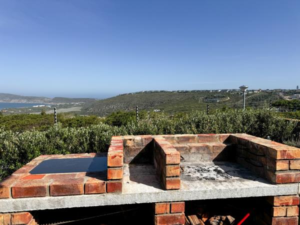 Attractive, single storey home, well positioned and elevated, within a small security estate, with magnificent sea and Robberg views. The home consists of an open plan lounge, dining room with a lovely coal stove, kitchen, enclosed patio/sunroom, built-in braai, 2 bedrooms, 2 bathrooms, double garage, carport. Extras include 3 water tanks, 5 kw invertor, fiber availability, solar. The garden is partially enclosed to accommodate pets.