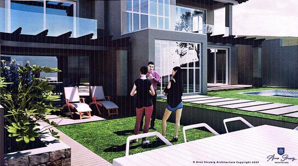 Upstairs, the plan includes three spacious en-suite bedrooms, each capturing soft natural light and peaceful outlooks over the gardens and valley. A versatile pyjama lounge opens onto both covered and open terraces, offering a peaceful, elevated retreat with a view.