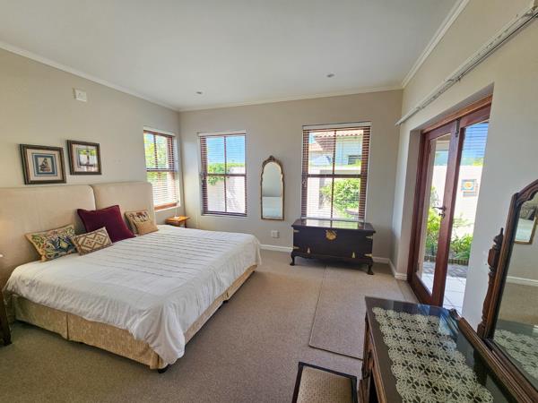 Located within walking distance to Robberg beach this quality home is situated in the security access estate of Whale Rock Gardens in Plettenberg Bay. Measuring 200m2 the house comprises of 2 bedrooms and a study (or smaller 3rd bedroom) and a spacious lounge, dining room and well equipped kitchen and separate scullery. The home is warm and inviting and the living areas and kitchen are open plan with high white rafters in the lounge. The owner spent time on attention to detail and the windows are positioned to bring in so much light to the home. Designed for easy living and entertaining the lounge opens out to a spacious undercover patio, perfect for leisurely afternoons. There is a separate single garage and established well maintained garden. This is an immaculate well-loved home waiting for a new owner.