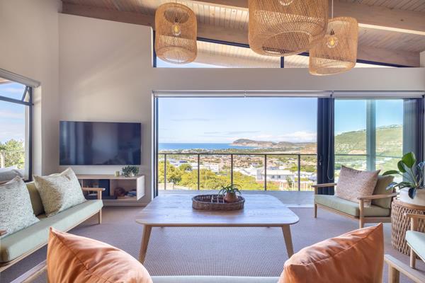 Ascending the stairs to the main living level, the first thing you notice is the light. Morning sun spills across the pool and sundeck as the ocean glimmers in the distance. Here, the world opens up. The house has been strategically designed to face north-east, boasting expansive 180 views across Robberg Peninsula and the Indian Ocean. Sky, sea, and mountain fill your vision as a soft sea breeze wisps by.