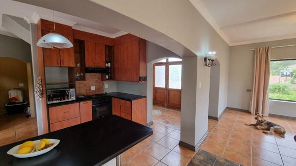 Designed for effortless entertaining, the spacious living and dining areas flow into a large, partially covered outdoor entertainment area, complete with a brick-and-mortar braai BBQ and thatch roof lapa. Surrounded by lush greenery and a tranquil Cycad garden, this private space offers an oasis of calm. The homes proximity to Cola and Myoli beaches makes it an ideal retreat for beach lovers and nature enthusiasts, with frequent visits from bushbuck and duiker in the backyard.
