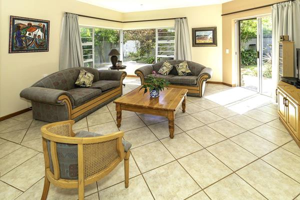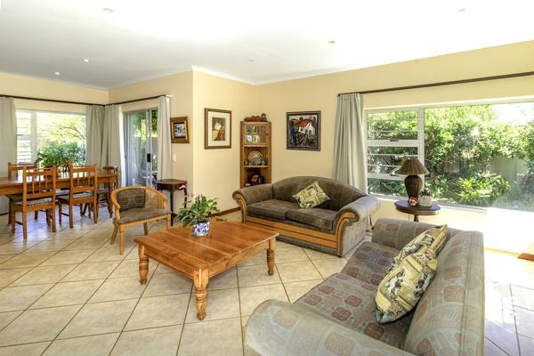 The main home is spacious and offers an open plan lounge and dining room, leading out to the garden on east and west sides of the house, a large kitchen and separate scullery/laundry with three en-suite north-facing bedrooms. The master suite is extremely spacious with own lounge area and patio and large en-suite bathroom on the upper level. The two apartments adjoin the house, each with their own entrance. A comfortable bachelor apartment with kitchenette and west-facing balcony is on the upper level and a one-bedroomed apartment with kitchenette leads out to the garden on the lower level.