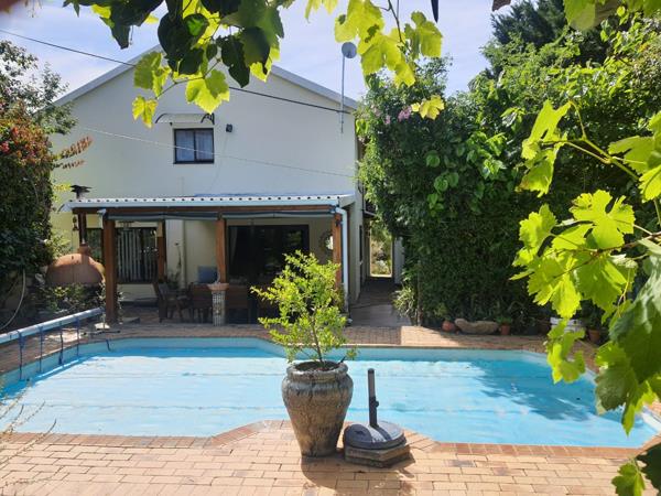 The main home features 4 spacious bedrooms, multiple living areas, and a sunny studio/sunroom. The modern kitchen with scullery and laundry flows to a dining room and lounge, opening out to a sparkling pool and entertainment area surrounded by mature trees.
