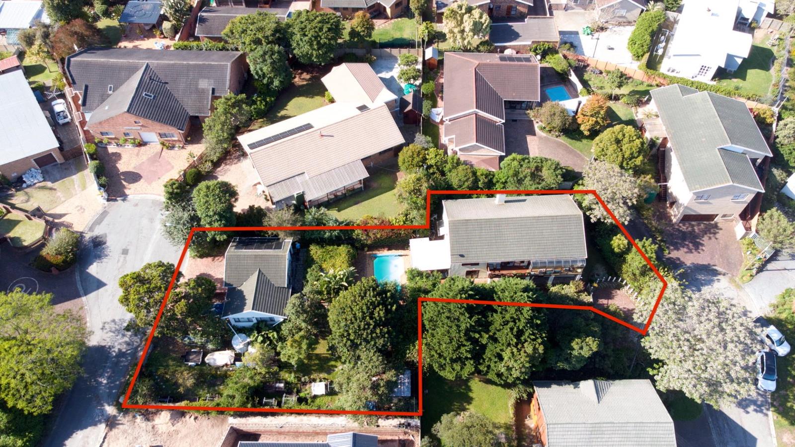 Upstairs :Up the flight of stairs to a generous-sized lounge area with a fireplace and doors leading to a private balcony. The master bedroom is a true retreat boasting a walk-in dressing room and a full en-suite bathroom. Doors lead to a large sunroom boasting floor-to-ceiling glass which is the perfect artists studio or work space. The balcony extends out the atrium looking over the lush front garden. Two double-sized bedrooms share the full family bathroom. The second property (715 sqm) that is linked comprises of a 72 sqm double garage and workshop. Creatively this can be converted into a comfortable garden cottage. To the side of the garage and workshop is a driveway for boat or trailer access parking. The generously sized property provides endless possibilities for expansion. A separate driveway entrance from the cul-de-sac makes this separate and private from the main dwelling.