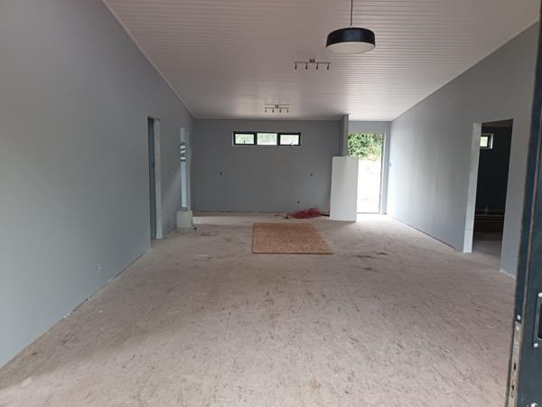 Open-Plan Living: The living, dining, and kitchen areas flow effortlessly onto a wooden deck, perfect for entertaining or enjoying peaceful mornings.