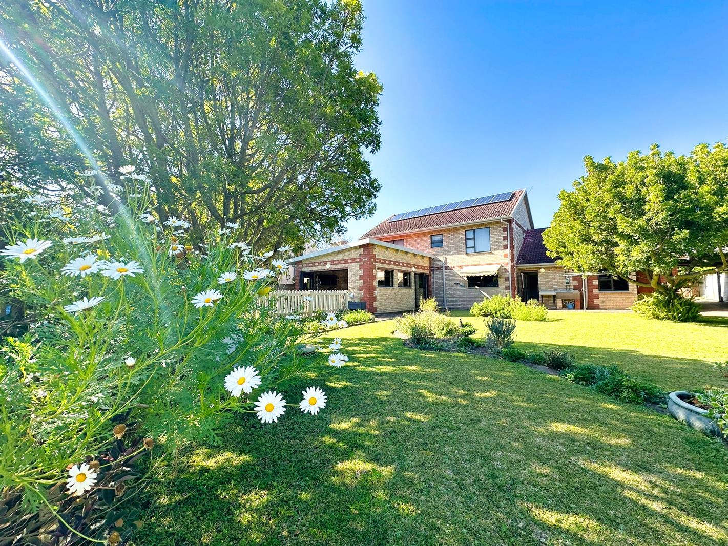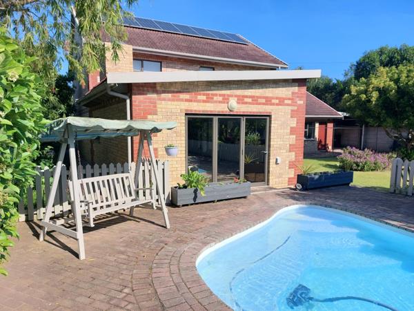 Built for a carefree lifestyle, the home features low-maintenance face brick, aluminium windows, solar power with inverter, and an irrigation spike with pump. The sparkling pool is set in a lush, leafy garden with plenty of north sun and privacy, while a well-planned herb and vegetable garden sits just behind the pools picket fence.