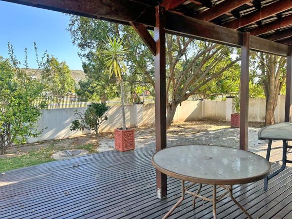 A single garage with extra storage, a carport, and a paved driveway provide plenty of parking. A pedestrian door from the garage leads into a private courtyard with direct access to the kitchen, making daily routines effortless. The propertys level, fully enclosed garden is ideal for pets, while the estate offers the added advantage of a communal borehole.