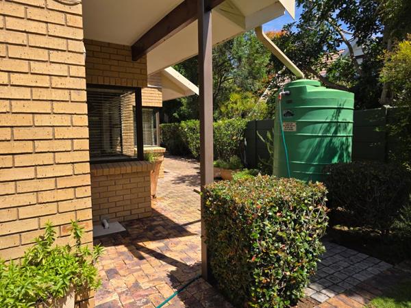 Sliding doors open onto a beautifully designed undercover patio, featuring a built-in braai, full lighting for evening entertainment, and views over the immaculate, manicured lawnthe perfect setting for family gatherings or relaxed weekend braais.