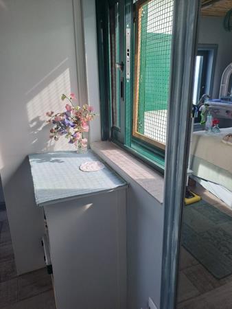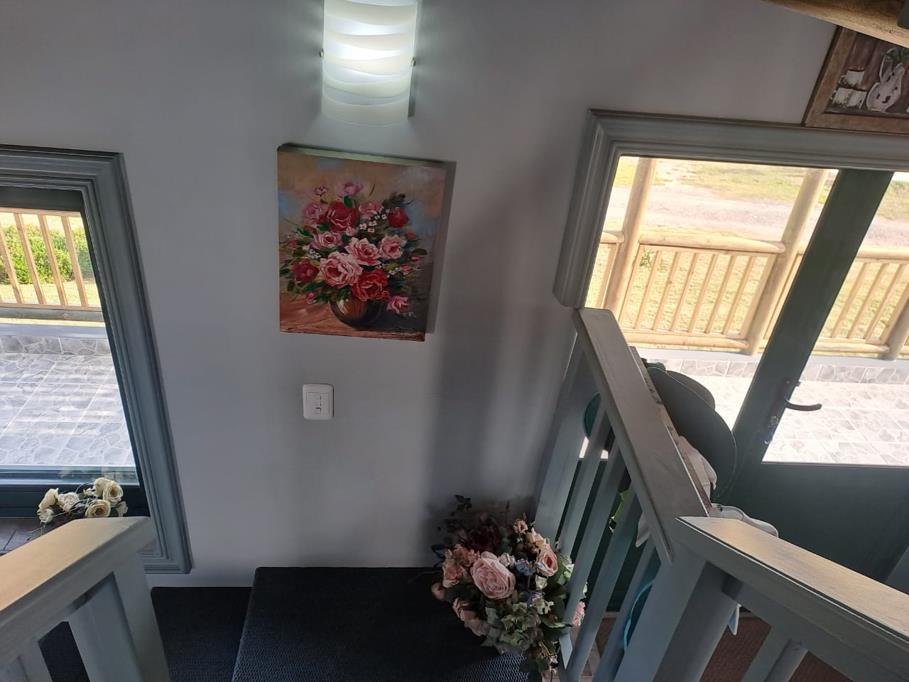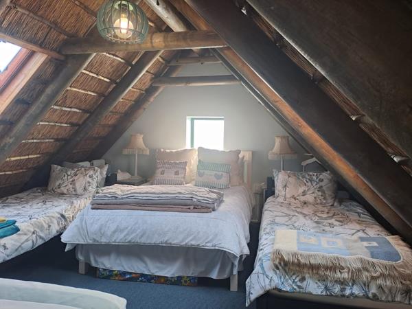 Completely off-grid, the home includes solar power, an inverter, gas appliances, borehole water, and low-maintenance finishes.