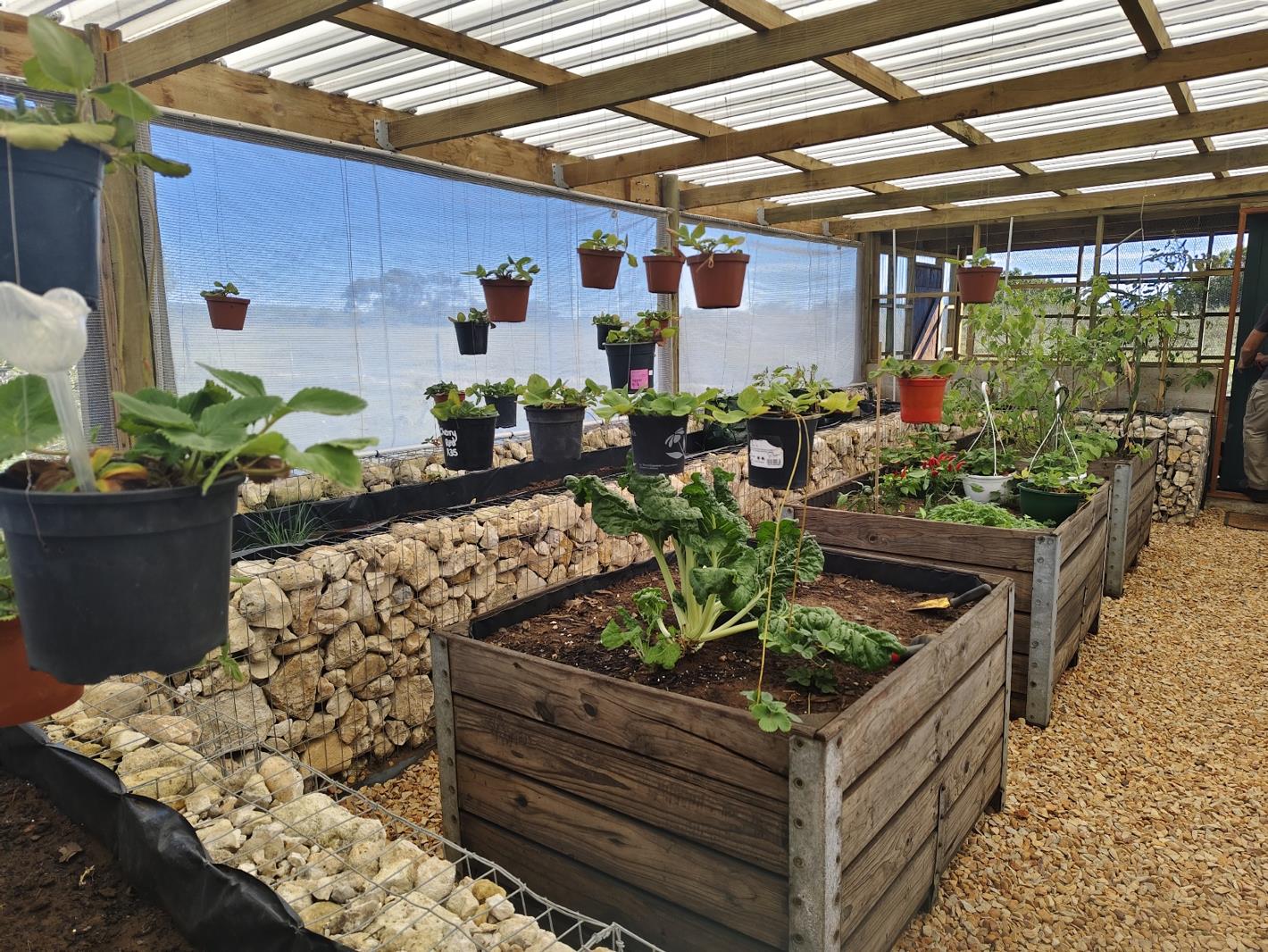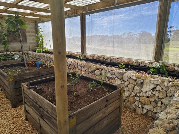 Water is abundant with a 15 000 litre per hour borehole and rainwater is collected into tanks for home use.