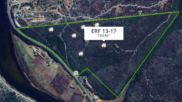 This exclusive development offers only 20 elevated plots of 700 m each, set on a sloping landscape among indigenous fynbos. From every angle, youll enjoy breathtaking river and sea views while embracing a sustainable, off-grid lifestyle surrounded by untouched natural beauty.