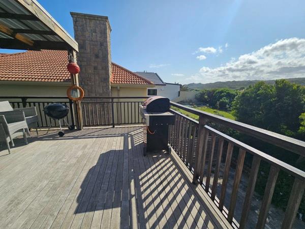 Second floor: Ascending the second floor and be graced by an expansive open plan entertainment zone, boasting a living and dining area. As you enter you are drawn to the uninterrupted ocean vistas, whilst enjoying the comfortable open plan area which can seat your whole extended family.The built-in braai ensures that every gathering is filled with sizzling flavours while the open plan kitchen allows seamless interaction with loved ones as you prepare mouthwatering meals. A guest toilet and basin are discreetly placed near the entertainment area. The spacious scullery completes with laundry amenities leads out onto a cozy northern side patio, perfect for morning coffee or evening sunsets.The main bedroom featuring a balcony and conveniently is located on this level.A large en-suite bathroom showcasing a bath, shower, vanity and toilet.