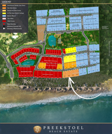 Wake up to the sound of waves and panoramic ocean views in the sought-after Preekstoel Estate. This rare beachfront stand offers the perfect canvas to design your dream coastal home, just steps from the sand.