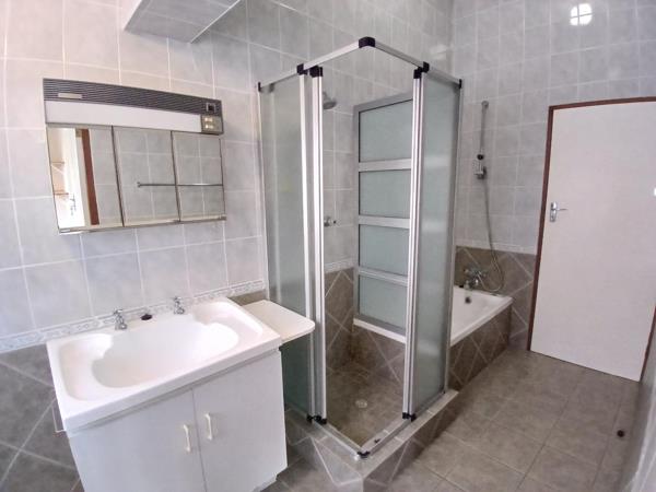 Two spacious bedrooms with built-in cupboards share a generously sized bathroom. For your peace of mind, the property is fitted with security gates and burglar bars.