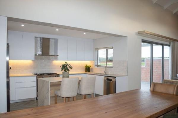 A modern kitchen, cleverly integrated with the dining area and braai room for a seamless cooking and social experience.