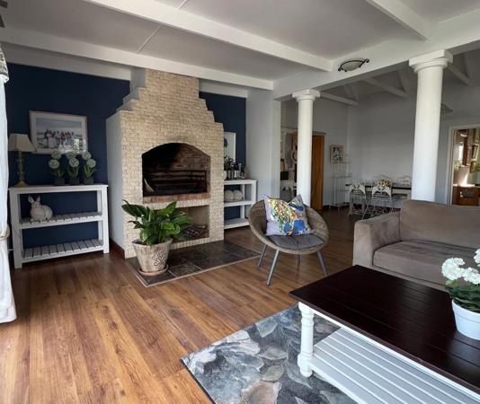 A lovely veranda leads into the welcoming and light-filled open plan living, dining and kitchen area, featuring a fireplace and large stacking doors that open fully to the veranda, creating seamless indoor-outdoor living.