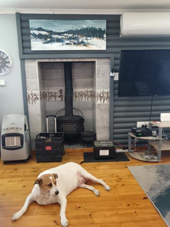 The main house, located on the upper level, features a seamless, stair-free design for ultimate convenience. Upon entry, a welcoming hallway leads into an expansive open-plan living area, complete with a cozy fireplace, a dedicated office nook, a spacious dining room, and a modern kitchen with a pantry. The generous main bedroom includes an en-suite bathroom, ample built-in cupboards, and an additional storage spaceideal for extra belongings. The second bedroom, positioned along the passage, is conveniently located next to the stylish family bathroom.
