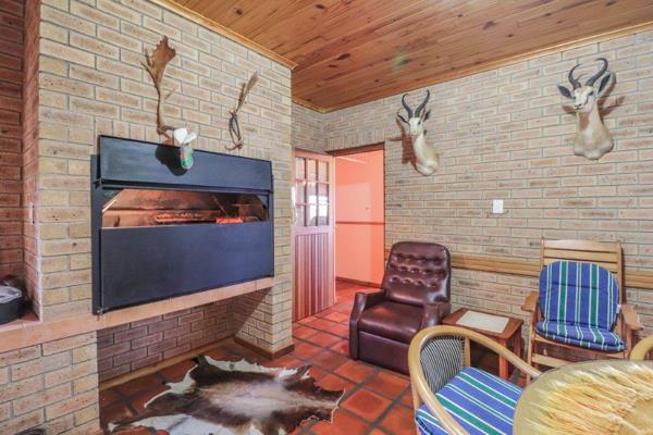 The main living area reveals panoramic vistas, thoughtfully designed to capture the breathtaking surroundings. The expansive open-plan layout seamlessly integrates the living and dining areas, featuring an indoor braai. This setup is perfect for alfresco gatherings, fostering a seamless indoor-outdoor ambiance and highlighting uninterrupted views from the lawn to the river. The well-appointed kitchen, integrated into the main living space, includes a separate scullerylaundry area for added convenience. The very neat 3 bedroom home offers enough space for the whole family.