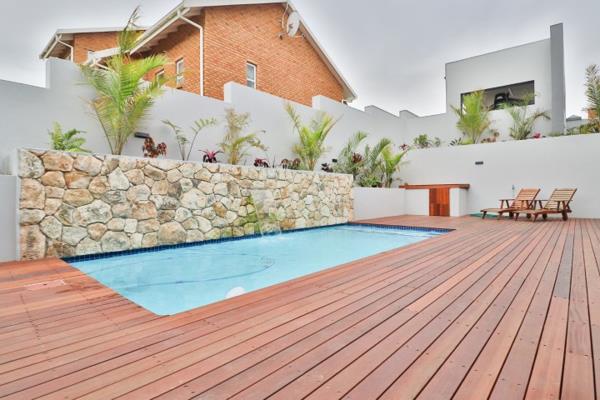 The upper level offers a grand experience an expansive covered balcony hosts a spacious lounge and dining area, along with a second kitchen and scullery. Two generously sized bedrooms with en-suite privileges provide a haven of comfort and tranquility, while an adjoining study offers awe-inspiring views of the kloof and distant seas.