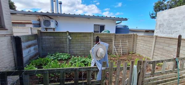Neat, low-maintenance garden, small vegetable patch, and full vibracrete fencing