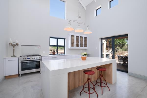 Newly built home with modern architectural features available in a quiet area, bordering a greenbelt on one side. This double volume home features clean lines with sleek finishes. A spacious open plan living and dining area flows into the contemporary kitchen with a gas hob and ample space for all other kitchen appliances. A separate scullery boasting loads of storage and accommodates a laundry section as well.