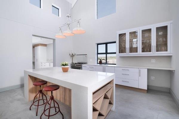 Step inside and be greeted by the grandeur of double volume ceilings, creating an airy and spacious atmosphere in the spacious open-plan living area. Designed with the utmost attention to detail and sleek screed floors exuding modern elegance, this home features an open plan concept seamlessly blending the lounge, dining, and kitchen areas. The kitchen is a culinary enthusiast''s dream, with a centre island providing ample seating space, luxurious Caesarstone countertops, and an abundance of storage in the form of stylish cupboards. The spacious extension of the kitchen caters for all your appliances and boasts a pantry closet keeping everything organized and the scullery area out of sight.
