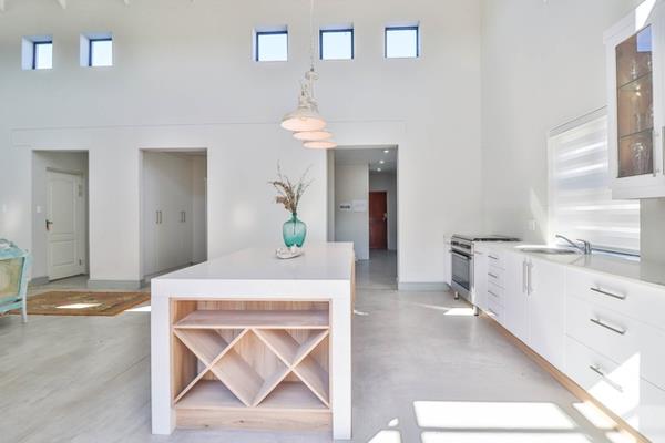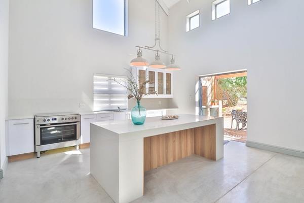 Newly constructed three-bedroom, three-bathroom home crafted by architects, boasting a spacious double-volume living and dining area. The kitchen seamlessly blends classic and contemporary design, featuring ample space for appliances, a convenient coffee station, pantry cupboard, separate scullery, and laundry area. A dedicated workspace with abundant storage is ideal for remote work. Outside, an inviting patio with a built-in braai offers the perfect setting for entertaining, complemented by a double garage featuring an automated aluminum door.