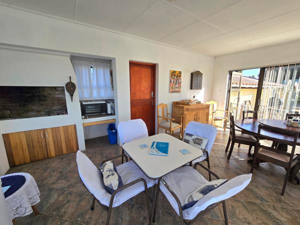 Additional highlights include two outdoor braai areas, ensuring alfresco dining options year-round. Practicality meets style with three modern bathrooms. Although Stilbaai is a very safe Coastal Town this house offers added security with burglar bars and an alarm system. Tasteful blinds and curtains throughout. The well-maintained garden, featuring majestic Milkwood trees, offers a serene outdoor space.
